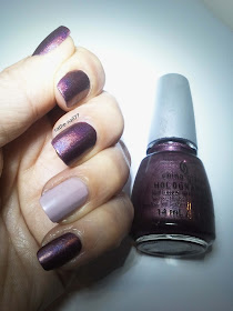Sur ce vernis j'ai stampé un motif de la plaque BM-306 avec le vernis H&M Purple Mist (difficile à photographier) et en accent-nail, j'ai stampé le même motif avec le China Glaze sur le vernis H&M.
